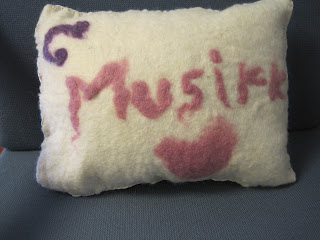 Gjenbruk av singel, alt for hardt tovet ullvott, fyllt med stappevatt, og voila, en skikkelig god nålepute verdig tekstilskapet!